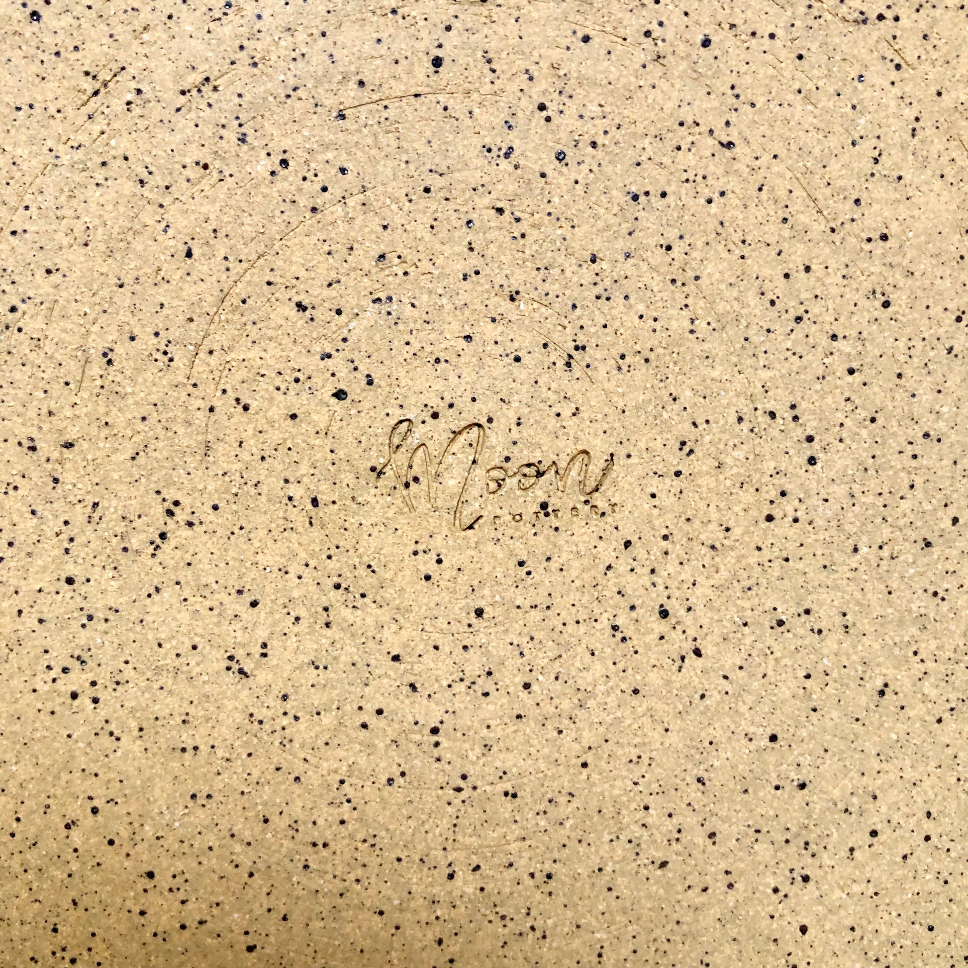 "Elevate your dining experience with this exquisite speckled clay plate, expertly handcrafted by Moon Pottery. The white glaze finish provides a stunning contrast to the earthy tones of the clay, making every meal a visual feast. Ideal for showcasing your culinary creations, this plate's unique speckled pattern and artisanal charm add a touch of sophistication to any table setting. Lovingly made by a local artist in Los Angeles, it's not just a plate—it's a piece of art."