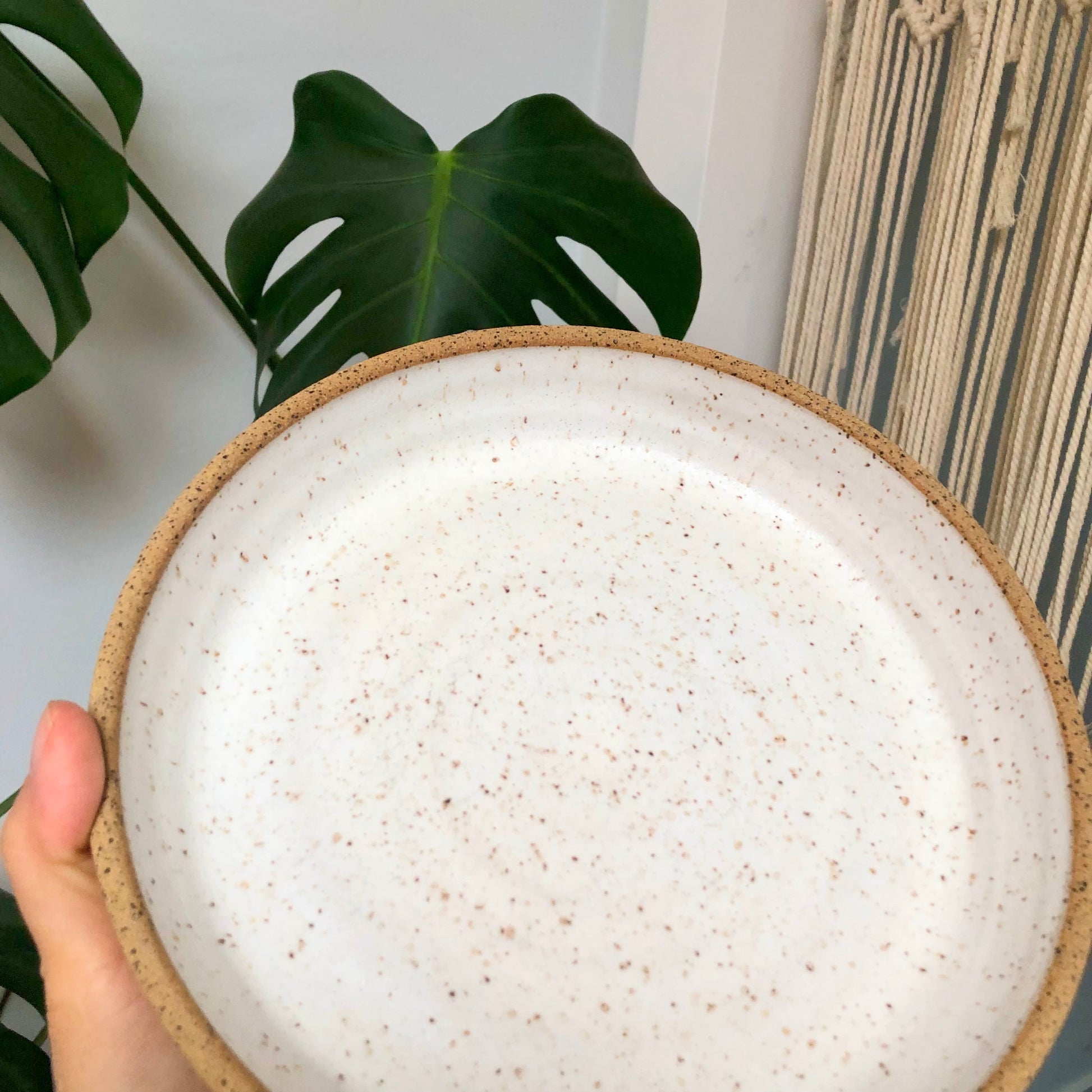 Artisan Speckled Clay Plate with White Glaze - Handcrafted by Moon Pottery
