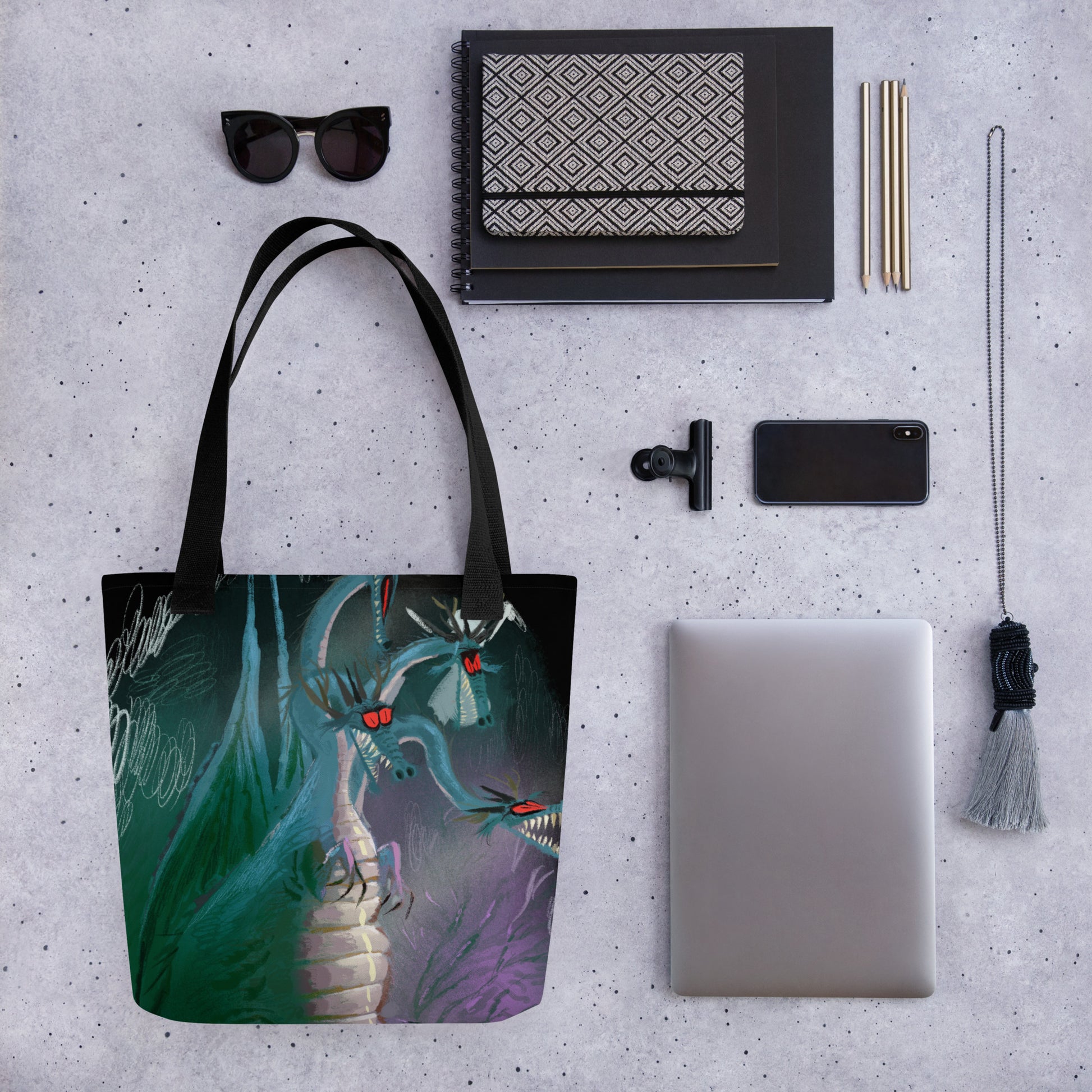 "Dragon Tote Bag - Hand-Drawn Illustration by Leo Matsuda | Fantasy Art Bag"