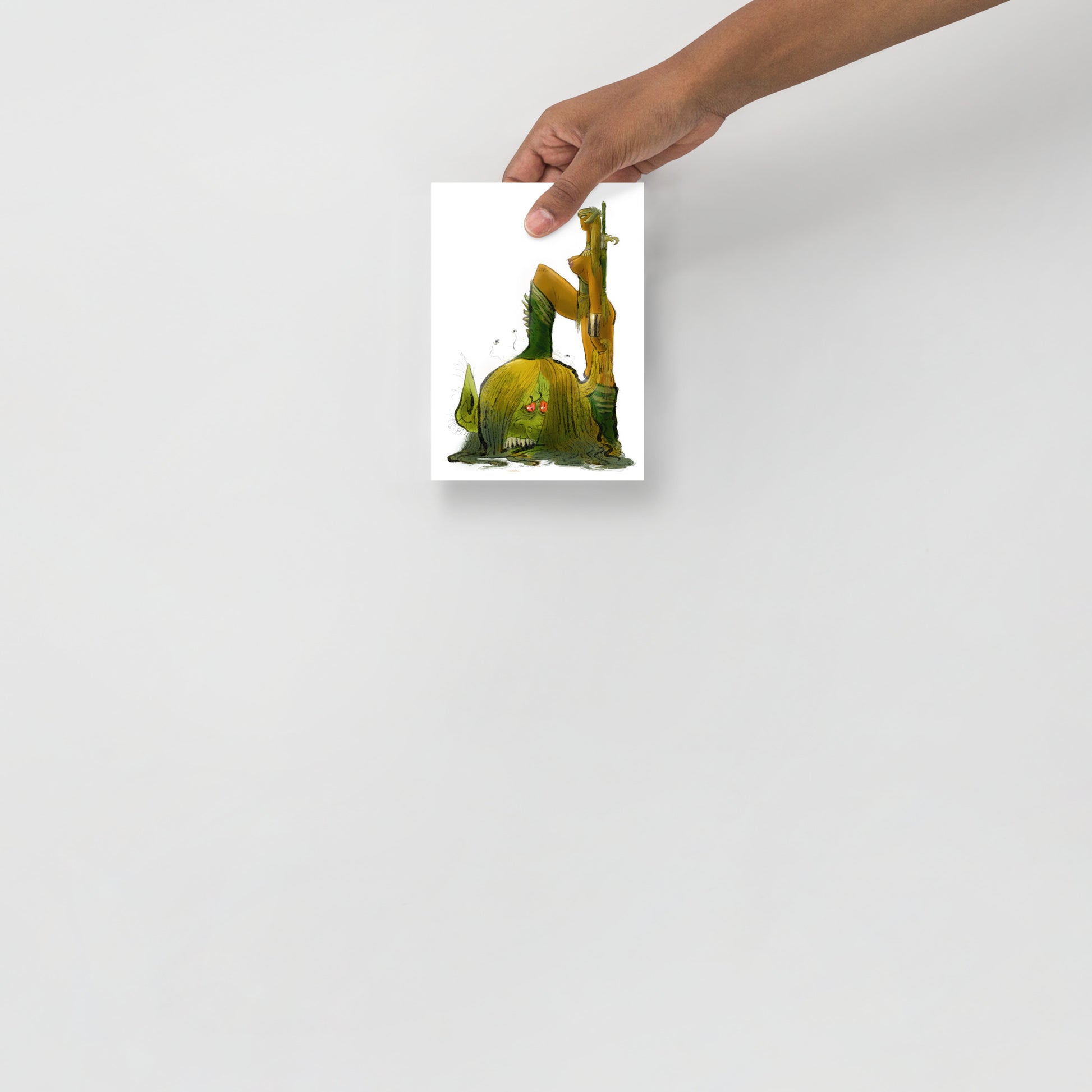 "Fierce Warrior vs Troll Art Poster by Leo Matsuda – Fantasy Battle Illustration"