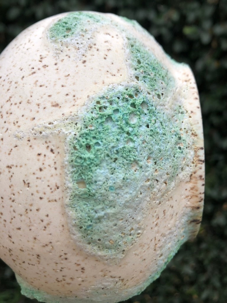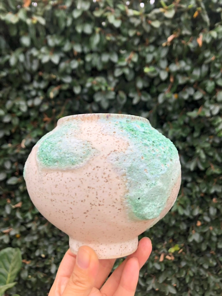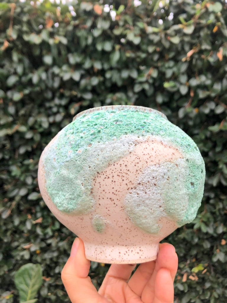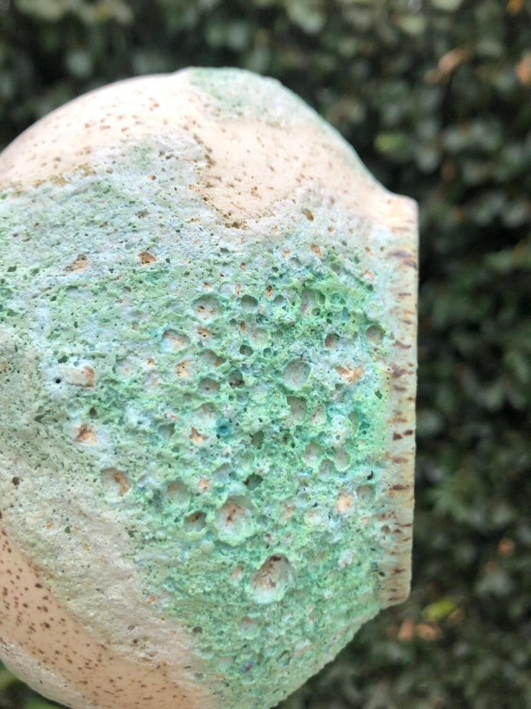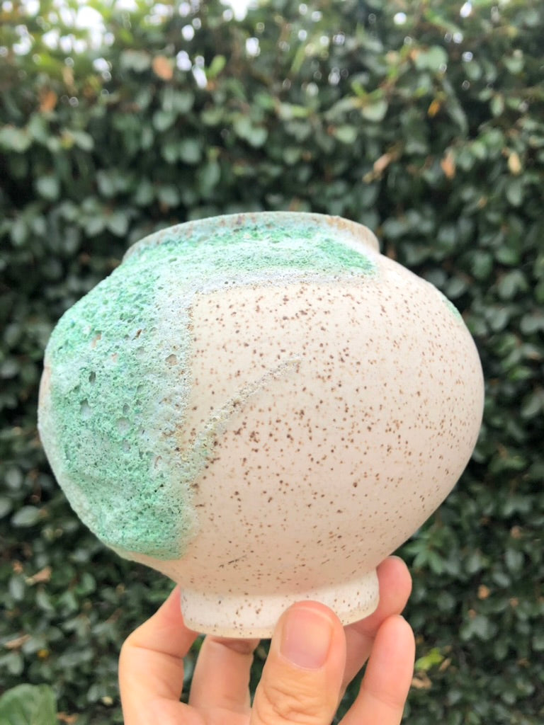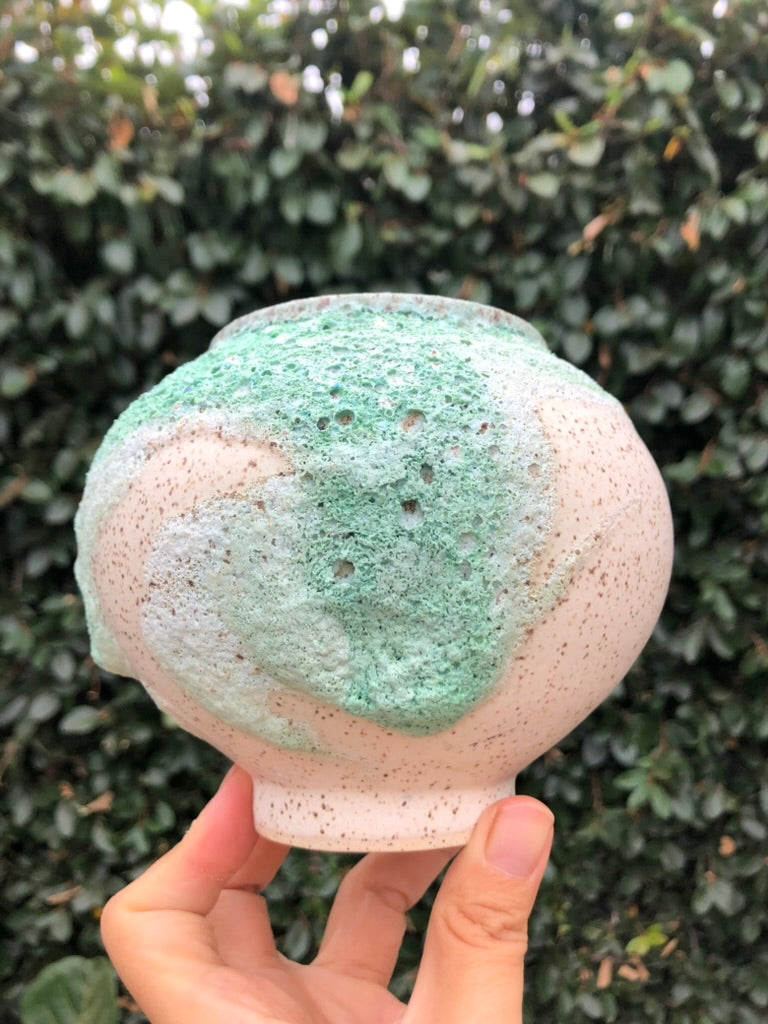 Embrace the beauty of imperfection with this handcrafted lava glaze pot by Moon Pottery. Featuring an organic, free-form shape and a playful, textured surface, this pot captures the essence of earthy nature. The vibrant green and white glaze, reminiscent of volcanic landscapes, evokes a mindful connection to the natural world. Each piece is a celebration of holistic craftsmanship, blending the unpredictability of nature with the mindful artistry of hand carving. Perfect for those who appreciate the harmony of imperfection and organic beauty in their space.