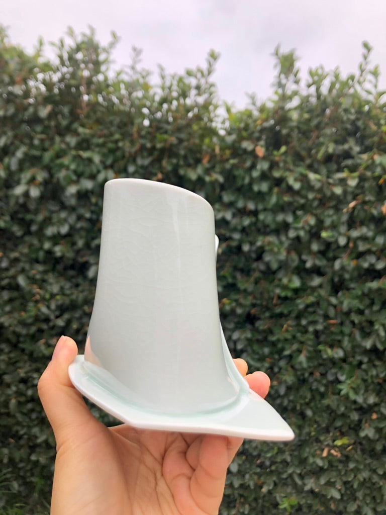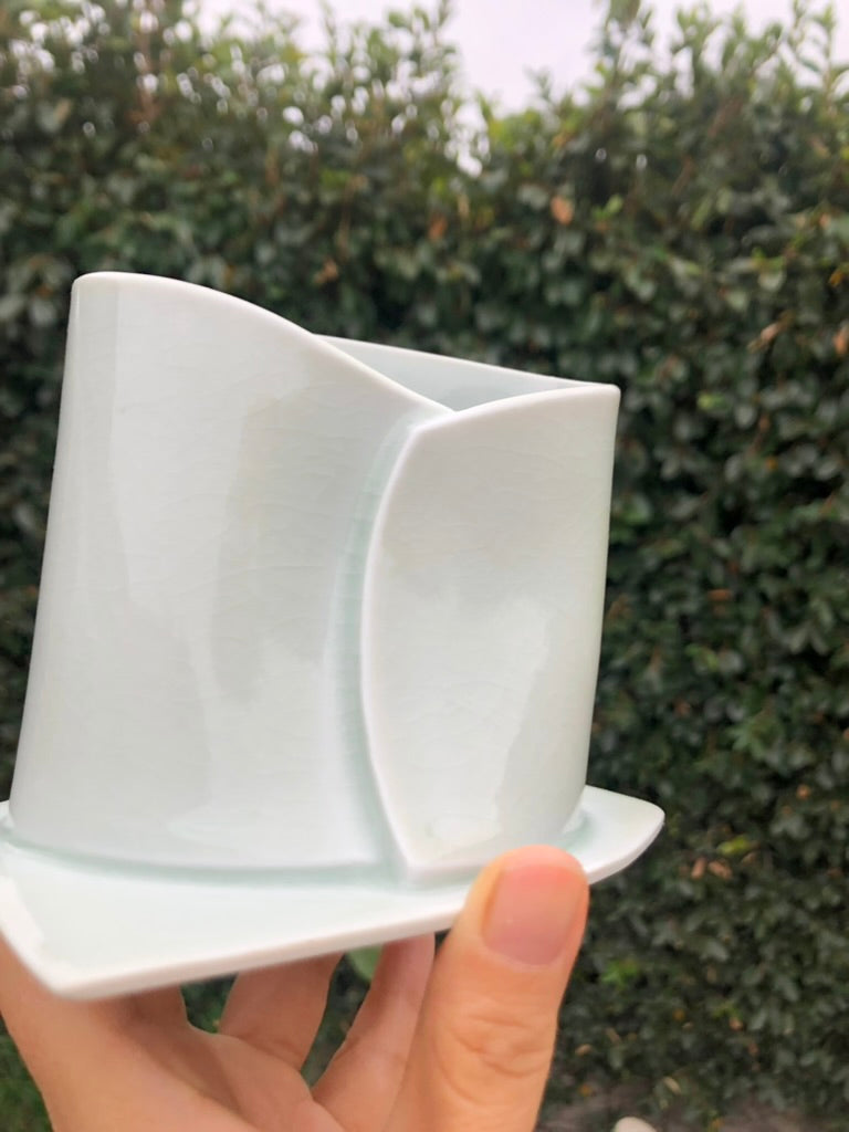 Inspired by the art of pastry making, this delicate handmade porcelain sculpture captures the soft, elegant curves of a croissant in a beautifully refined form. Each piece is meticulously crafted to evoke the sweetness and gentle nature of the baking process, offering a unique fusion of art and culinary inspiration. Handmade by Moon Pottery, this sculpture brings the charm and warmth of artisanal craftsmanship to your home, perfect for lovers of both art and baking.