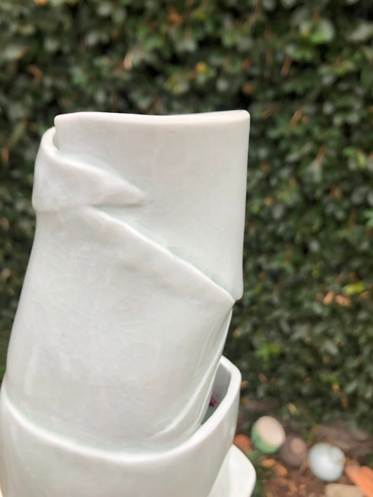 Inspired by the art of pastry making, this delicate handmade porcelain sculpture captures the soft, elegant curves of a croissant in a beautifully refined form. Each piece is meticulously crafted to evoke the sweetness and gentle nature of the baking process, offering a unique fusion of art and culinary inspiration. Handmade by Moon Pottery, this sculpture brings the charm and warmth of artisanal craftsmanship to your home, perfect for lovers of both art and baking.