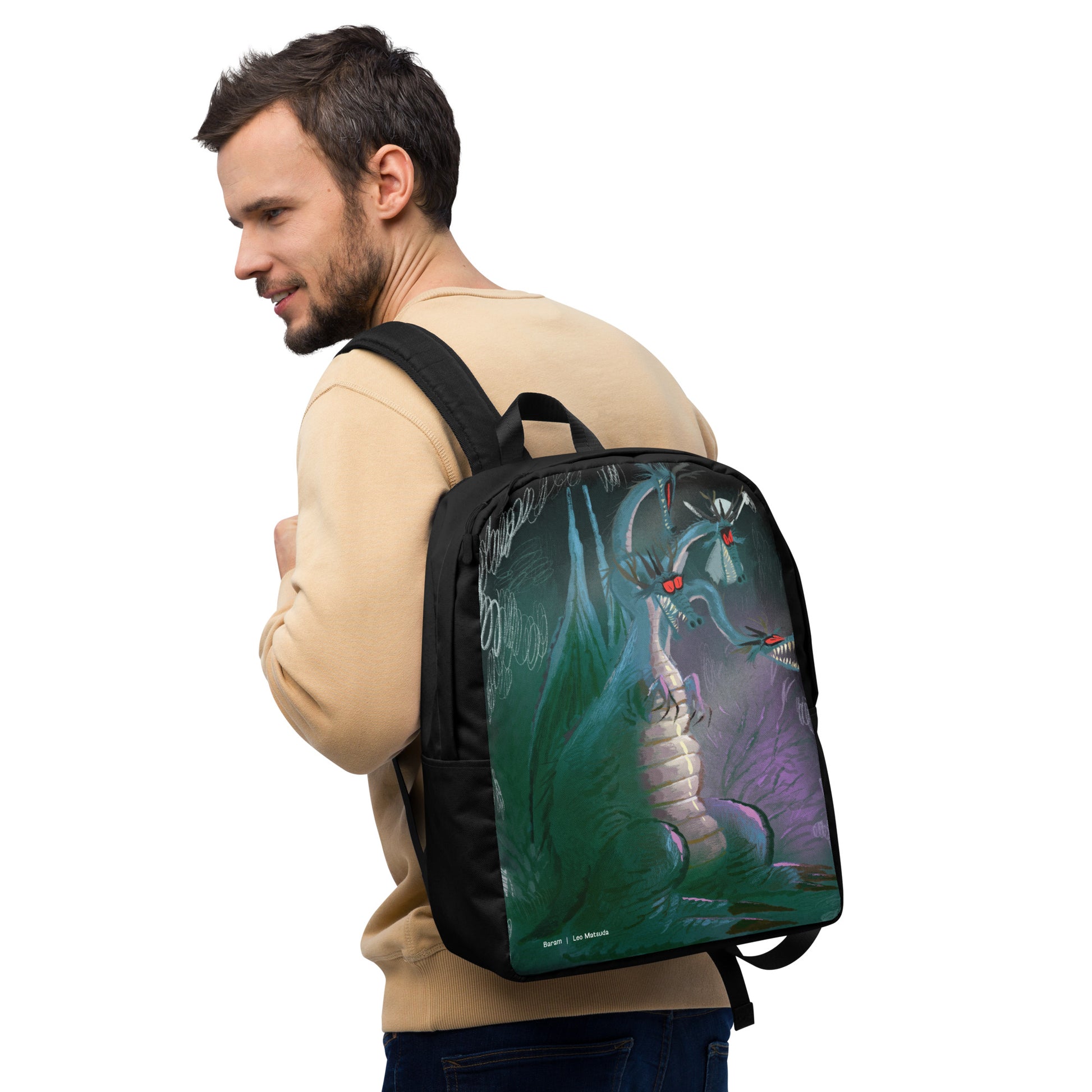 "Minimalist Dragon Backpack - Hand-Drawn Illustration by Leo Matsuda | Sleek Fantasy Art Bag"