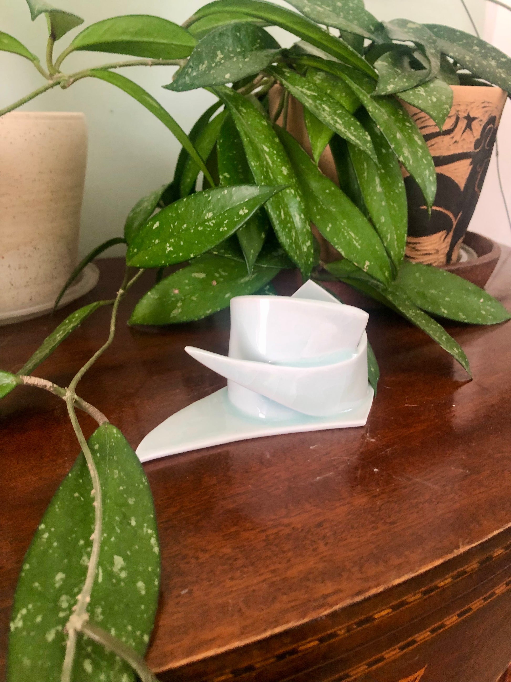 Inspired by the art of pastry making, this delicate handmade porcelain sculpture captures the soft, elegant curves of a croissant in a beautifully refined form. Each piece is meticulously crafted to evoke the sweetness and gentle nature of the baking process, offering a unique fusion of art and culinary inspiration. Handmade by Moon Pottery, this sculpture brings the charm and warmth of artisanal craftsmanship to your home, perfect for lovers of both art and baking.