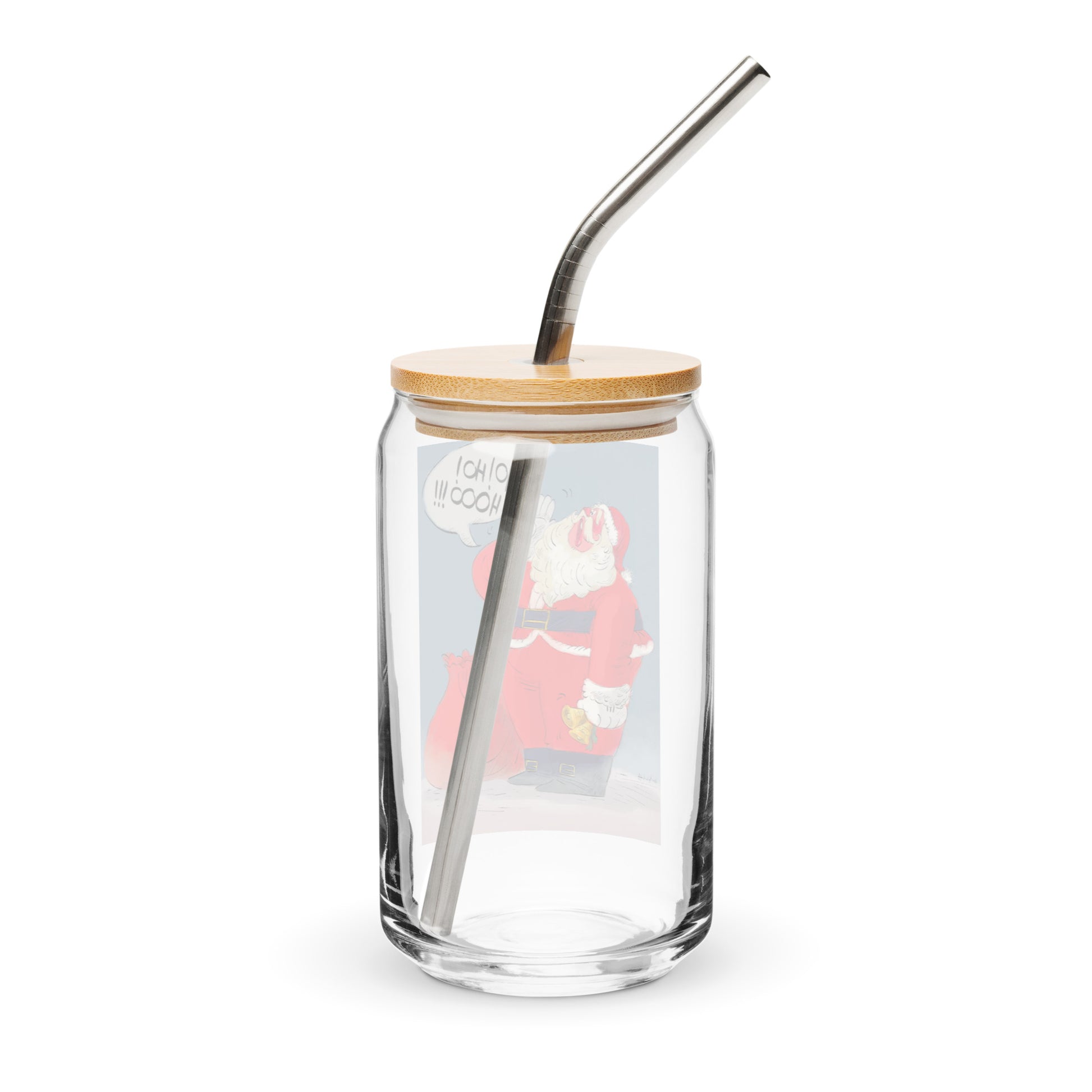 "Santa Christmas Can-Shaped Glass - Hand-Drawn by Leo Matsuda | Festive Holiday Drinkware"