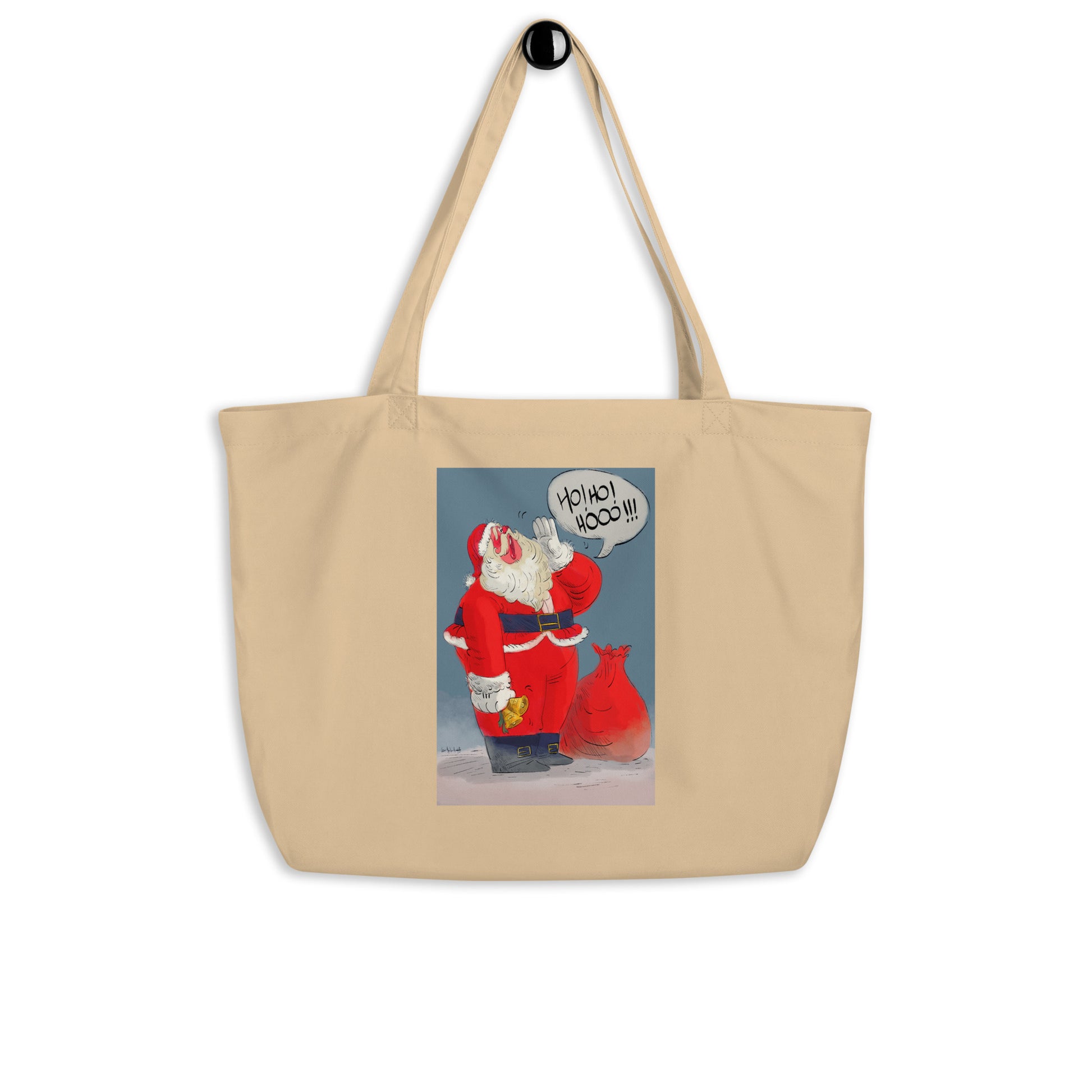 "Santa Christmas Organic Tote Bag - Hand-Drawn by Leo Matsuda | Eco-Friendly Holiday Bag"